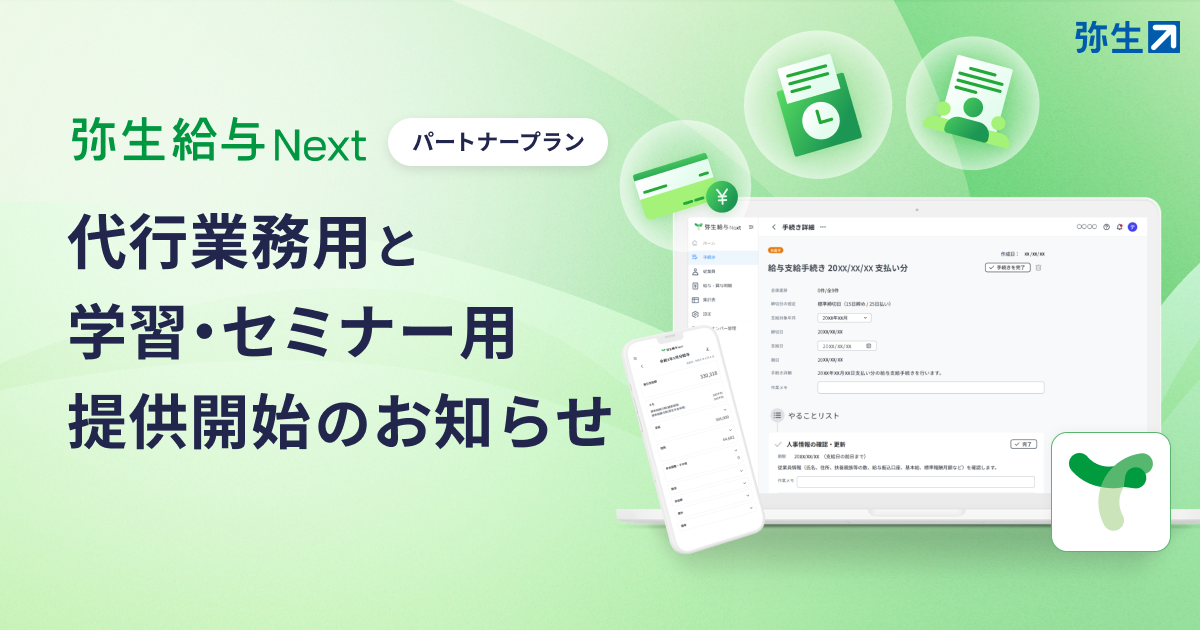弥生株式会社(本社:東京都千代田区、代表取締役 社長執行役員 兼 CEO:武藤健一郎、以下「弥生」)は、弥生のパートナーがご利用いただけるクラウド給与サービス「弥生給与 Next」の「パートナープラン」の提供を開始しました。これを記念し、2025年10月から2027年3月末※1まで、通常は従量課金となる事業所データ数の超過分も含めて、無償でご利用いただける「パートナープランリリースキャンペーン」を実施します。