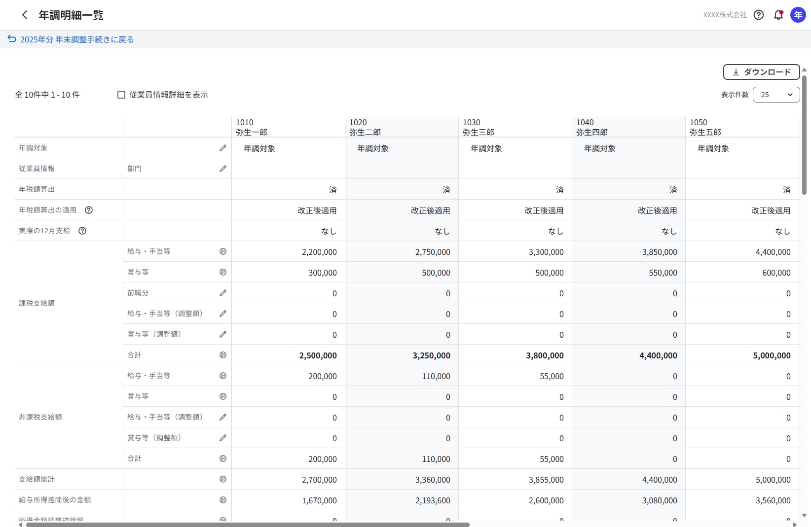これまで多くのユーザーが要望していた「年調明細一覧」画面を新たに搭載。