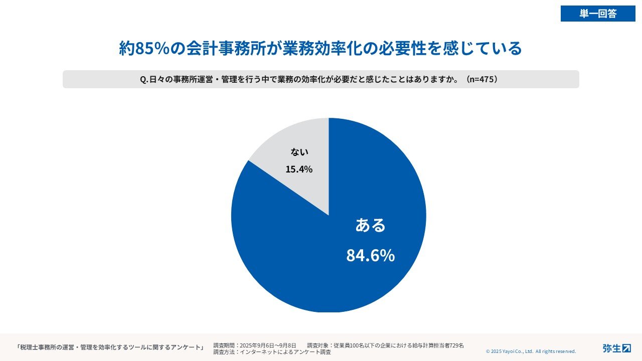 <約85%の会計事務所が業務効率化の必要性を感じている>