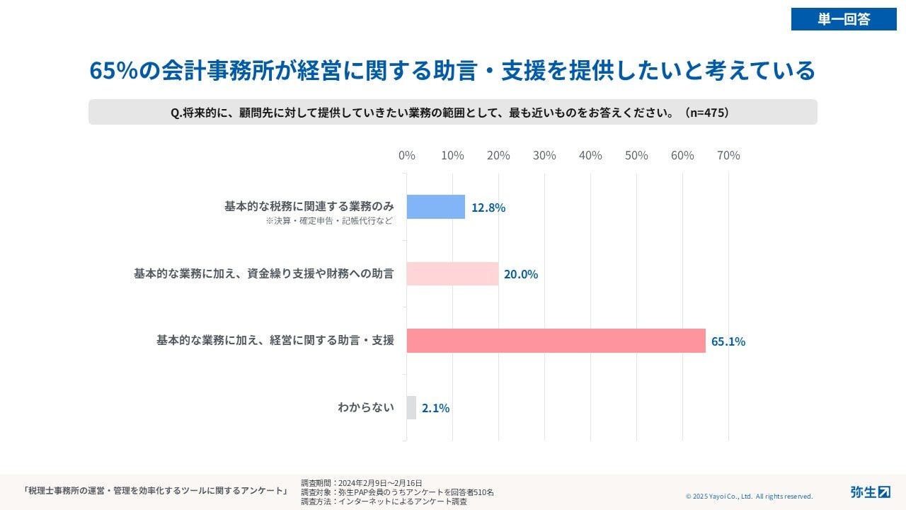<65%の会計事務所が経営に関する助言・支援を提供したいと考えている>![]()