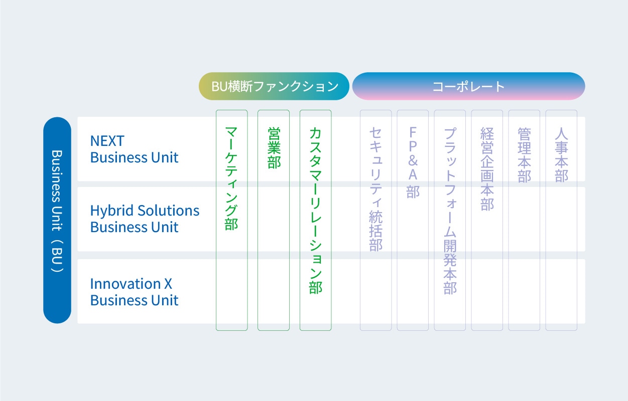 ひとつは、お客様に最も近い位置でブランドや製品を磨き上げるBusiness Unit(BU)。