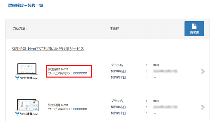 サービス契約IDの確認方法は以下をご覧ください