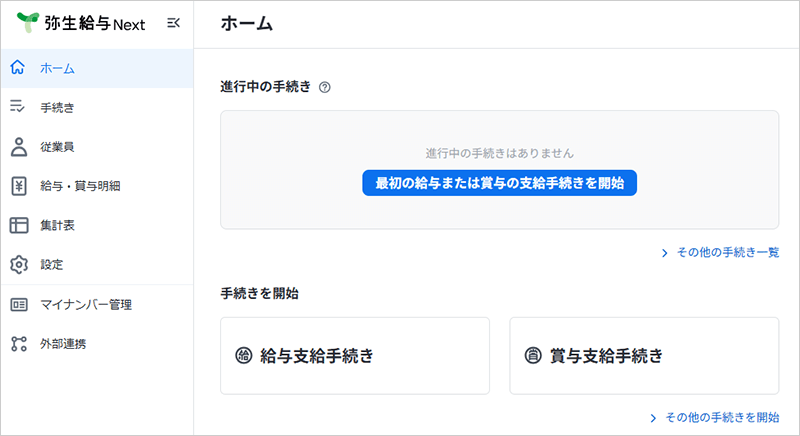 すでに「弥生給与 Next」へデータ移行済みの方は、ホーム画面が表示されます。