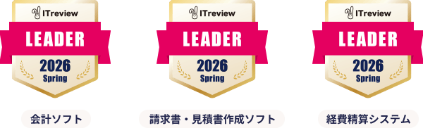 「ITreview Grid Award 2026 Spring 会計ソフト、請求書・見積書作成ソフト、経費精算システムカテゴリー」3部門で受賞。お客さまに圧倒的な支持を受けています