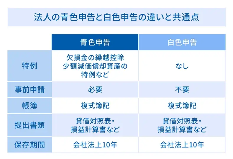 なお、法人は白色申告であっても決算書の作成が必要です。実務上は複式簿記による記帳が前提となるため、特に法人の場合は手間という面では青色申告も白色申告もほとんど違いはありません。