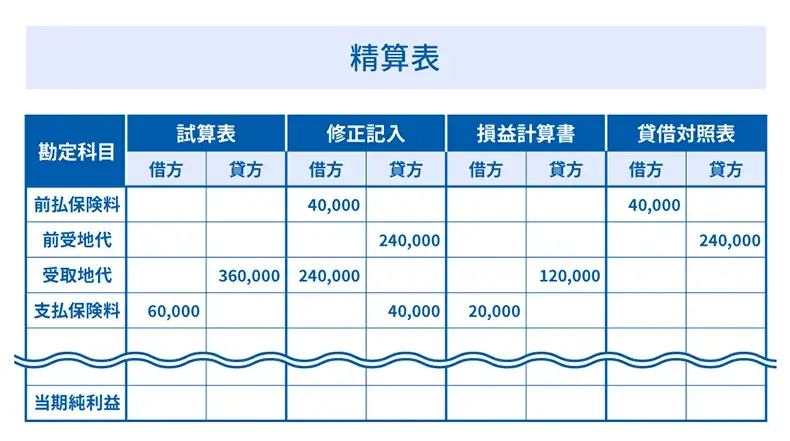 決算整理仕訳の後に、会計処理のミスがないかをチェックするために作成するのが「精算表」です。精算表は必ず作らなければならないものではありませんが、作成することで貸借対照表や損益計算書での金額の記載ミスなどを防ぐことができます。