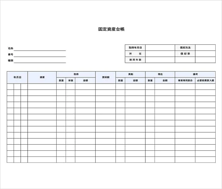 固定資産台帳の無料エクセルテンプレート