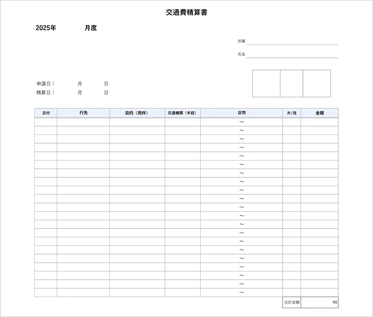 交通費精算書の無料エクセルテンプレート