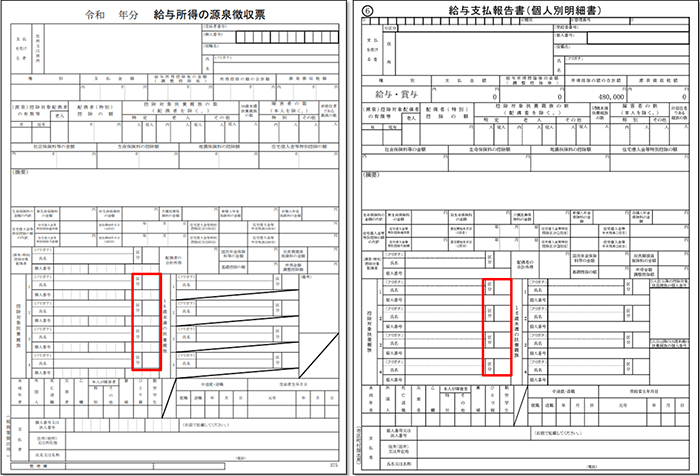 これに伴い、源泉徴収票および給与支払報告書(個人別明細書)の記載事項が変更されました。