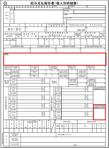 給与支払報告書(個人別明細書)の「摘要」欄に記載する事項