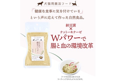 健康でなおかつおいしいもの、秋田県の強みを生かせるもの、ということで納豆が思い浮かびました。ただ、納豆をそのまま使うのではなく、フリーズドライにし、フレークやパウダー状にすることでペットフードとして使いやすいような形に商品開発しました。