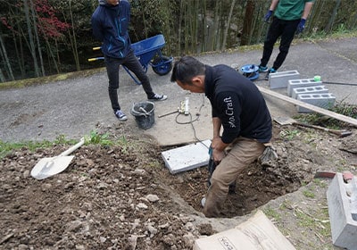 ただし、すべてを一人でやっているわけではありません。例えば、駐車場のコンクリート打ちやブロック積み、カーポートやフェンスの設置など、設計図があれば対応できる部分は外注さんにお願いしています。一方で、植木を植えたり石を扱ったりする仕事、つまり寸法だけでは表現しきれない部分は自分で施工しています。