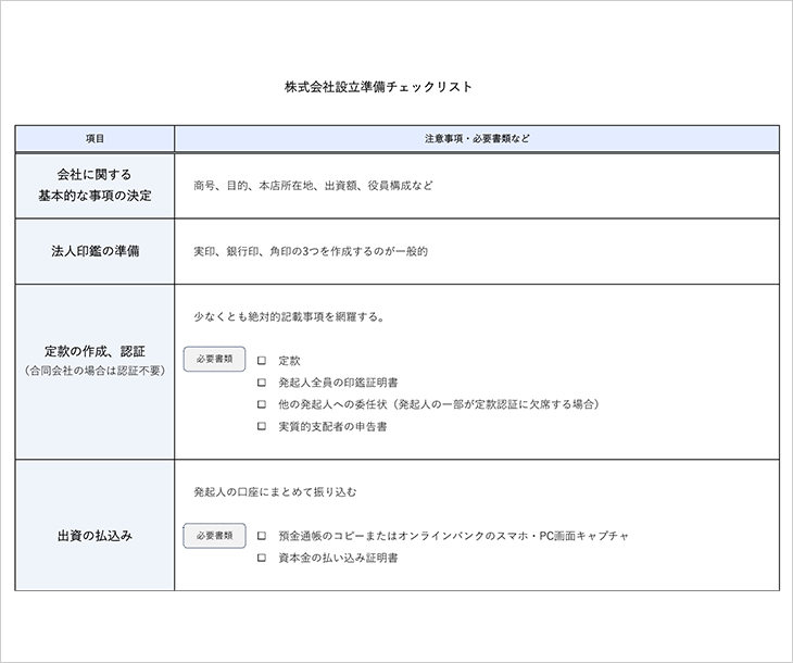 会社設立の手順と必要な準備、そして、会社設立後にやるべきことを解説します。チェックガイドに沿って進めてください。