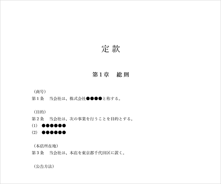 株式会社設立書類_定款のテンプレート