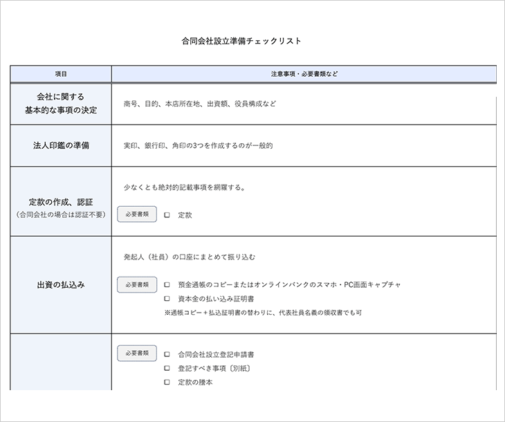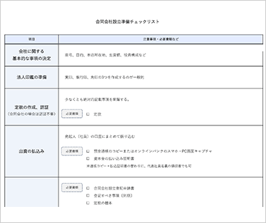 会社設立の手順と必要な準備、そして、会社設立後にやるべきことを解説します。チェックガイドに沿って進めてください。