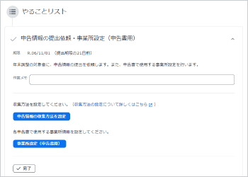 「やることリスト」で年末調整に必要なタスクを把握できます。さらにチェック表示で、完了したタスクが一目でわかるため、タスクの漏れを防ぐことができます。