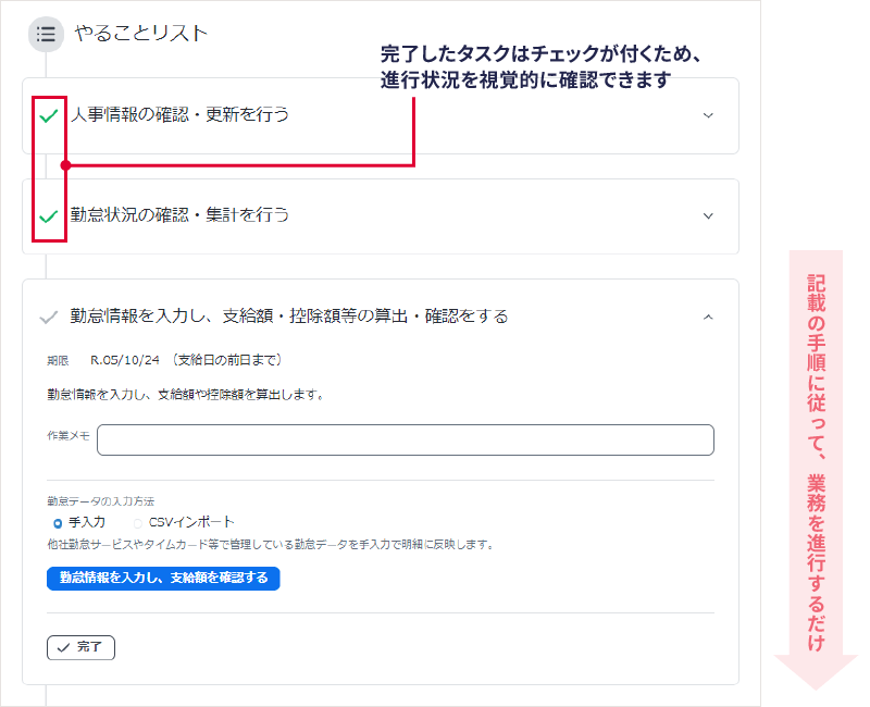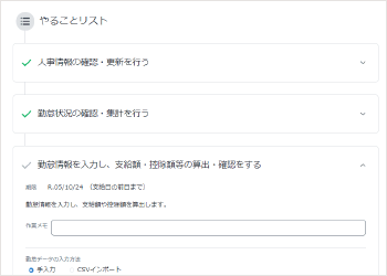 「やることリスト」で各業務の一連の流れが、把握できます。