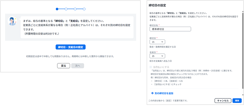 はじめに、「締切日・支給日の設定」を行います。