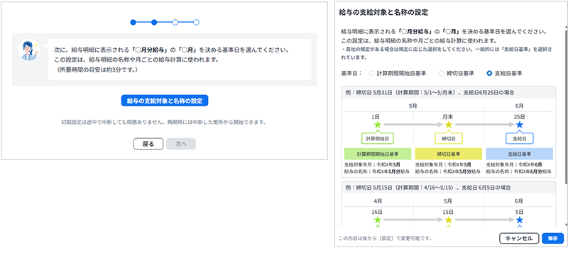 「給与の支給対象と名称の設定」を行います。