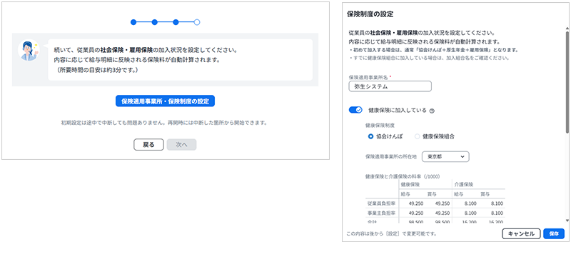 「保険適用事業所・保険制度の設定」を行います。