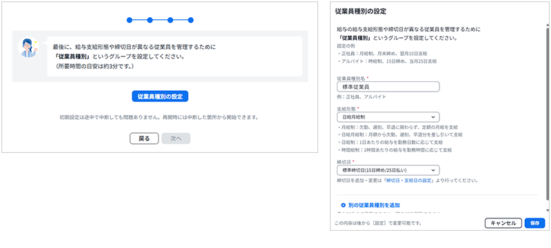 「従業員種別の設定」を行います。