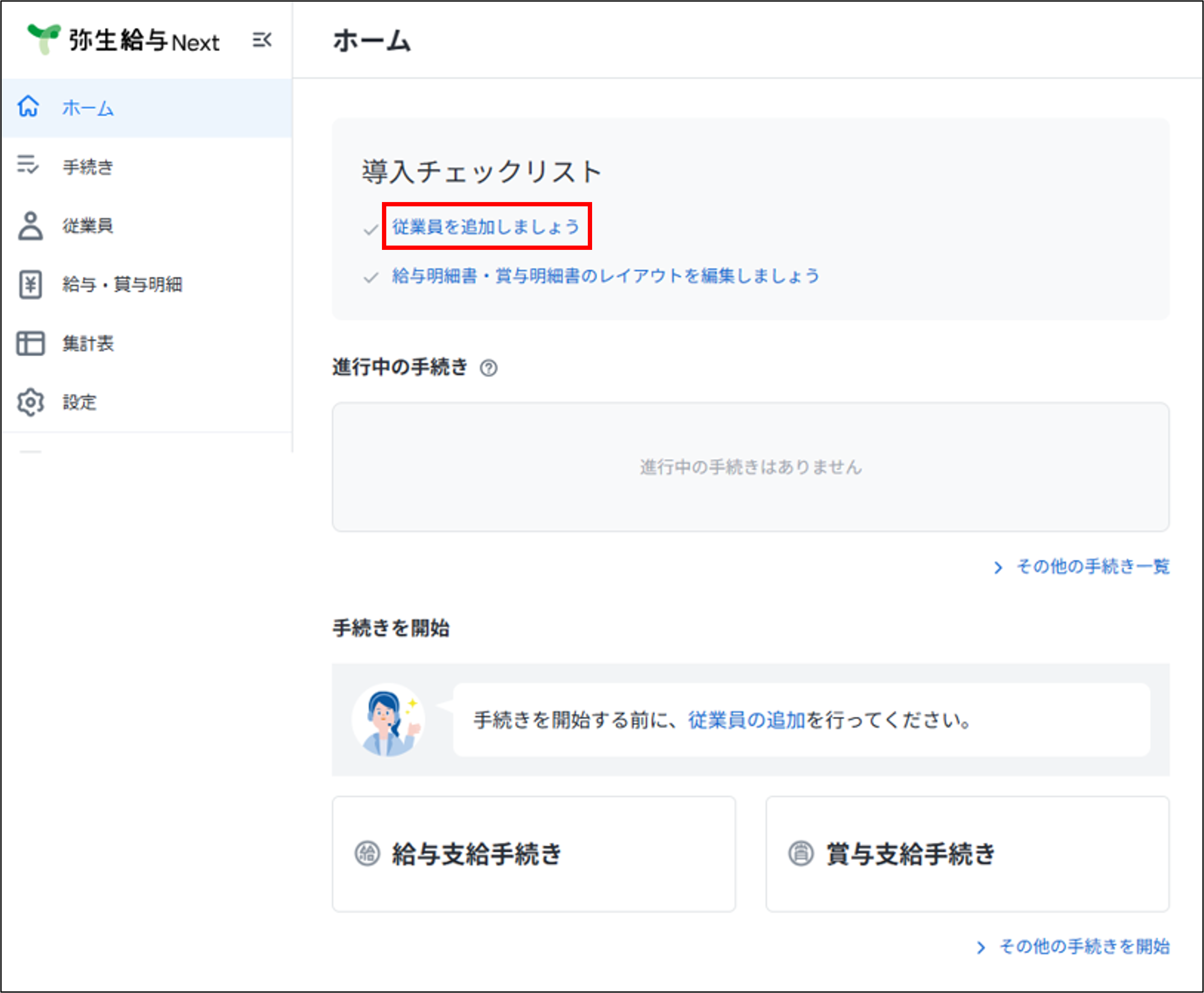 [導入チェックリスト]から[従業員を追加しましょう]をクリックします。