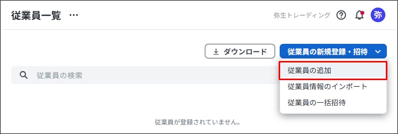 [従業員の新規追加・招待]から[従業員の追加]をクリックします。