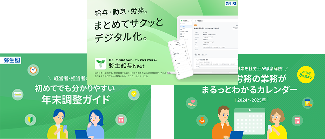 日々の業務に役立つ弥生のオリジナルコンテンツや、事業を開始・継続するためのサポートツールを無料でお届けします。