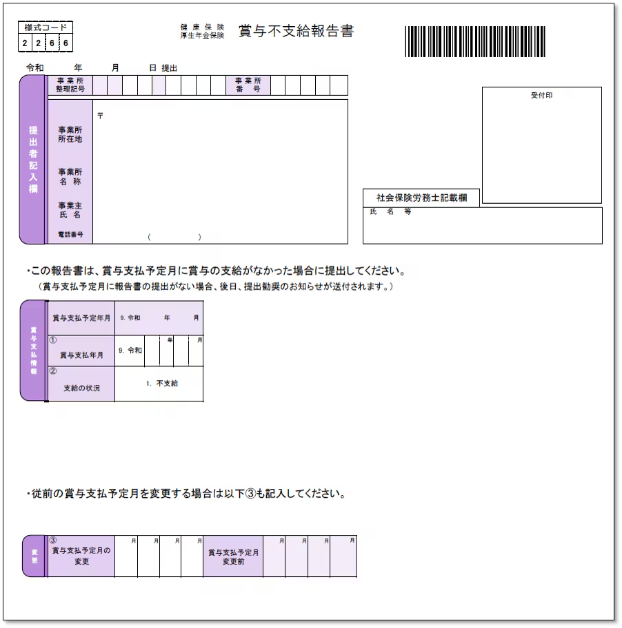 また、賞与支払予定月に賞与を支給しなかった場合は、「賞与不支給報告書」の提出が必要になりました。