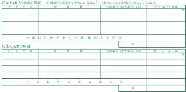 [青色申告決算書(一般用)]3ページに[売上(収入)金額の明細][仕入金額の明細]欄が追加されました。