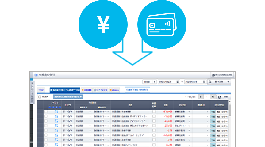 銀行明細、クレジットカードなどの取引データを自動取込、自動仕訳するので入力の手間が省けます。