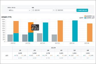 取引先別の請求金額レポートや売掛残高・回収予定一覧を見やすいグラフで確認することができます。