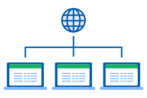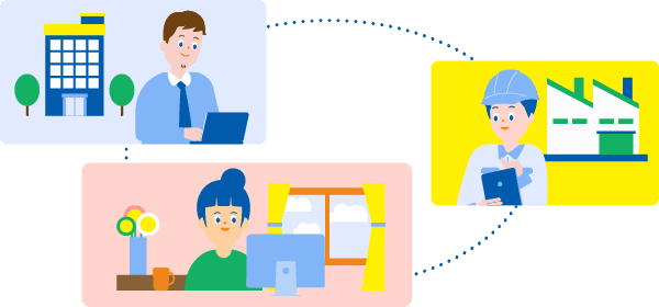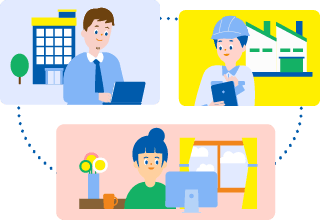 インターネットが繋がる環境であれば特別な回線や機器がなくても離れた拠点間で同じ弥生会計、弥生販売をご利用いただくことが可能です。