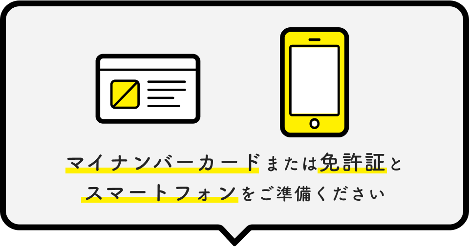 登録にはマイナンバーカードまたは運転免許証をご用意ください。