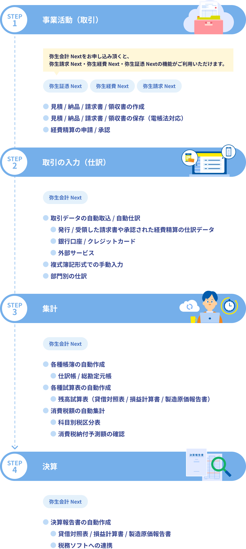 弥生会計 Nextのご契約で、弥生請求 Next・弥生経費 Next・弥生証憑 Nextをセットで利用できます。
