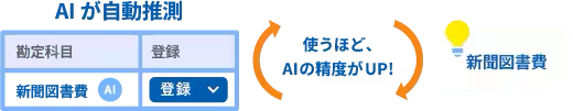 自動取得した取引データの勘定科目はAIが推測して提案を行います。学習機能があるので、使えば使うほど精度がアップします。