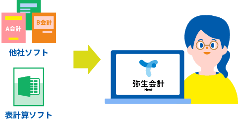 表計算ソフトや他社会計ソフトをお使いいただいている方もすぐに弥生会計 Next にデータを移すことができます。