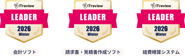 「ITreview Grid Award 2026 Winter 会計ソフト、請求書・見積書作成ソフト、経費精算システムカテゴリー」3部門で受賞。お客さまに圧倒的な支持を受けています