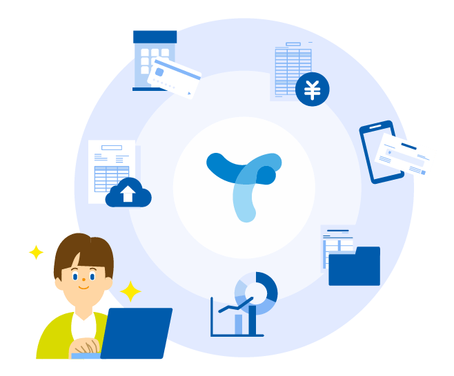 金融機関や各種サービスの取引データを自動取得。会計にまつわる業務やデータが自動でシームレスにつながります。