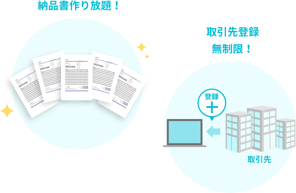 Misocaはプランに関わらず、納品書作成枚数も取引先登録も無制限でお使いいただけます。