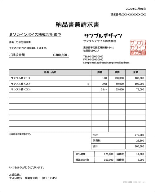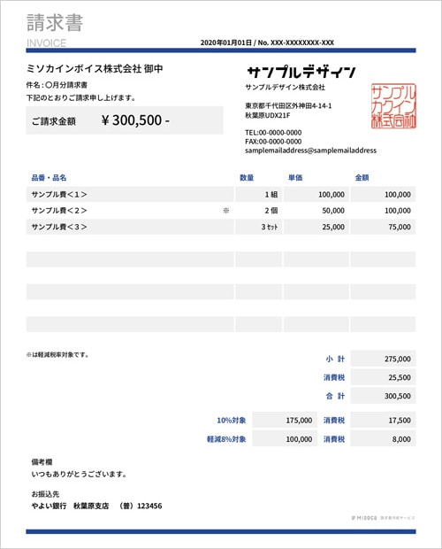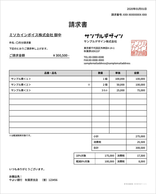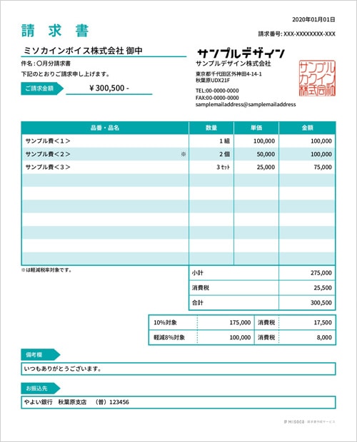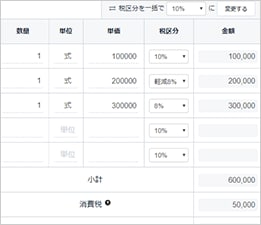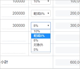Misocaは消費税10%・軽減税率8%の自動計算、区分記載請求書の出力に対応済です。計算式を設定し直す必要がありません。