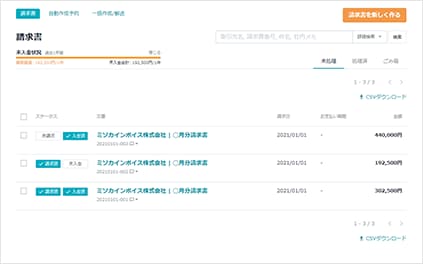 作成した請求書データをクラウドで一元管理できます。過去のデータを探すのも一瞬です。煩雑になりがちなデータ管理をシンプルにできます。