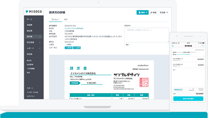 Misocaならインボイス制度に必要な適格請求書の発行や保存が可能です。