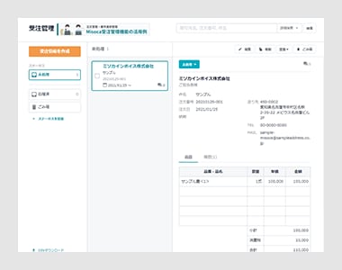 Misocaで作成した見積書や受注フォームを通じて取引先から送られてくる受注データを自動的に取り込み、納品や請求に至るまでのステータスを管理できます。電話やメール、FAX等で受けた注文も手入力で登録・管理が可能です。
