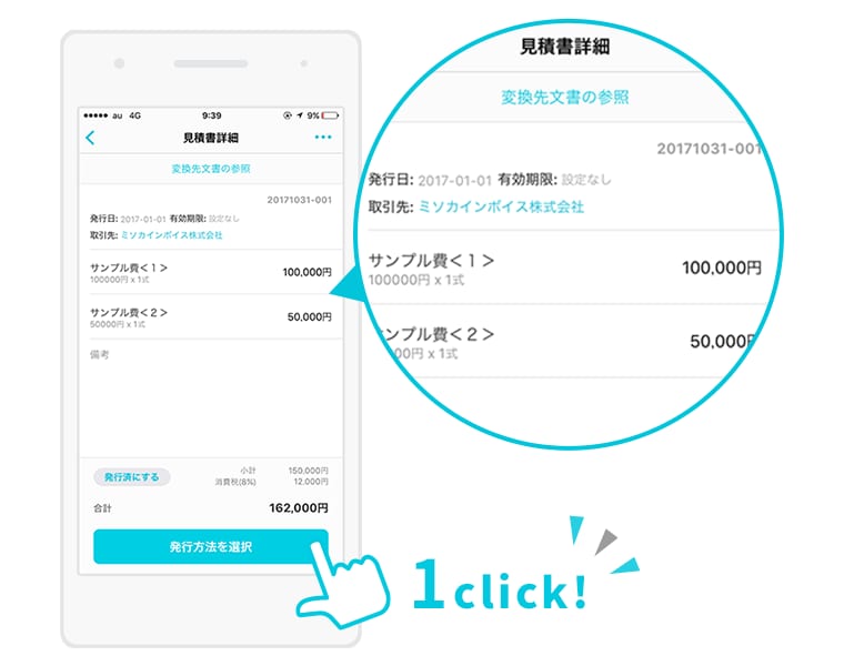 見積書の作成、ステータス管理ができます。メール送信手続きもアプリからワンクリックで完了します。外出先や移動中でのスキマ時間を効率的に使いたい方にオススメのアプリです。