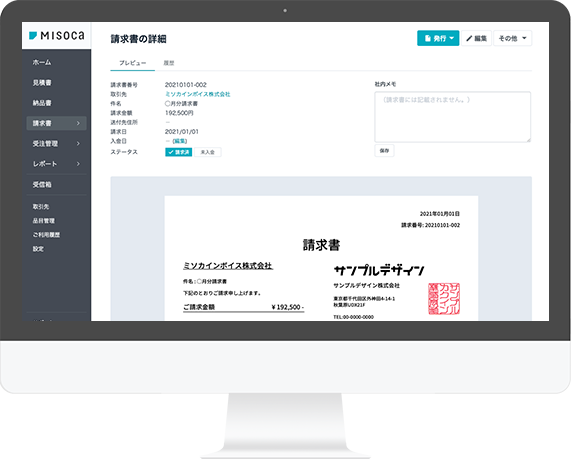 - Misocaはクラウドアプリです。ブラウザ上ですぐに請求書を作成できます。