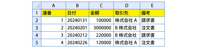 エクセルにデータを入力する際、日付や取引先名が統一されていないとうまく検索できない可能性があります。
