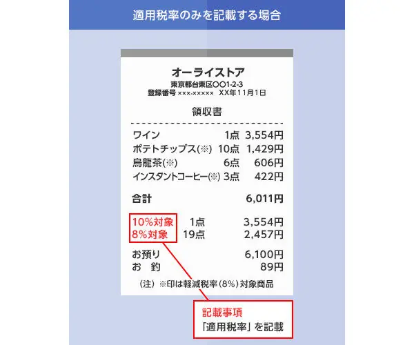 渋田:何が10%で、何が8%なのか、ひと目でわかることが目的なので、税率ごとに品目を分けて書く、軽減税率の品目に「※」などの識別できる印を付ける、などで大丈夫です。