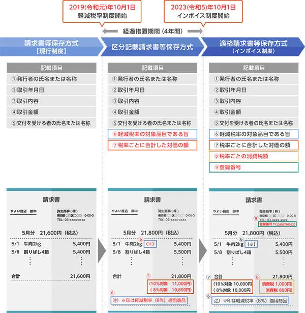 2019年10月からは区分記載請求書等保存方式が、その4年後の2023年10月からはインボイス制度(適格請求書等保存方式)が導入されるため、請求書や領収書などの書類の記載、そして、取引の帳簿記載が煩雑になるかもしれません。