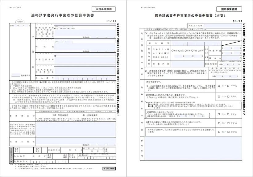適格請求書発行事業者の登録申請書(国内事業者用)